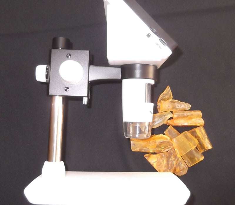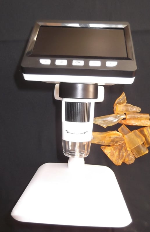De barnsteen (copal ) samen met microscoop de opnames zijn gemaakt met de microscoop van de afbeeldingen