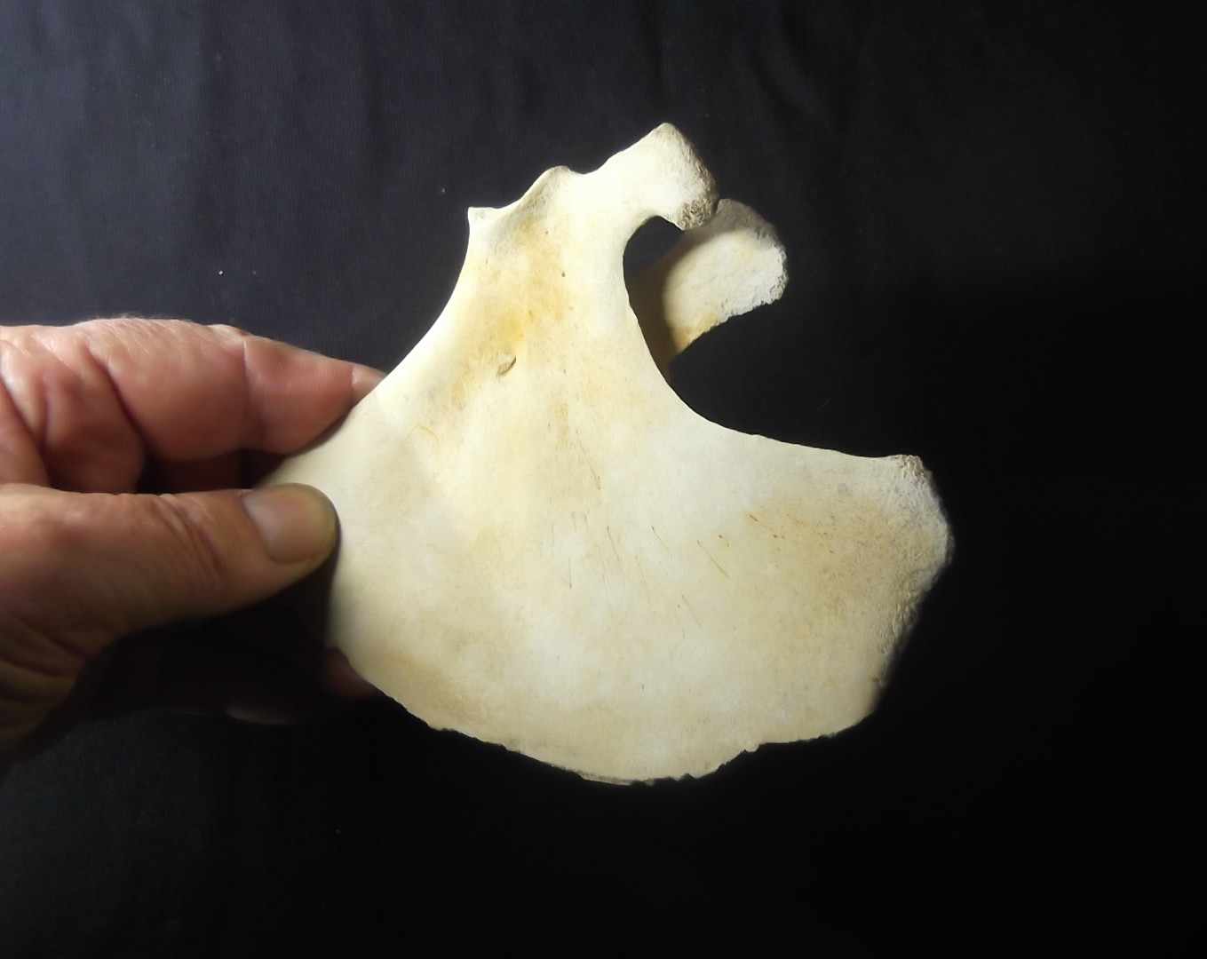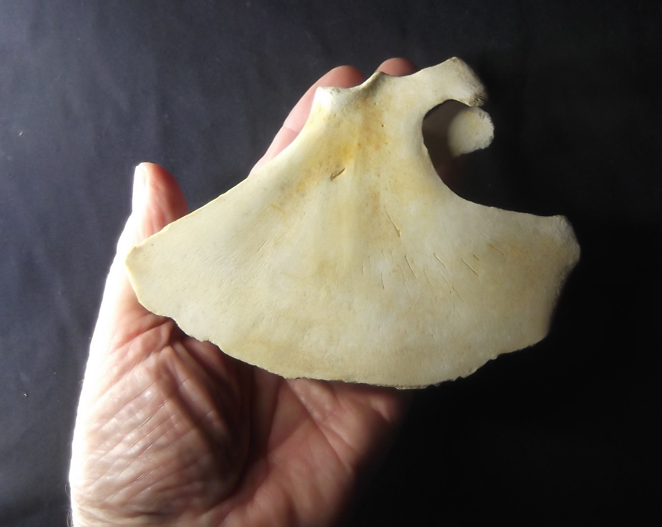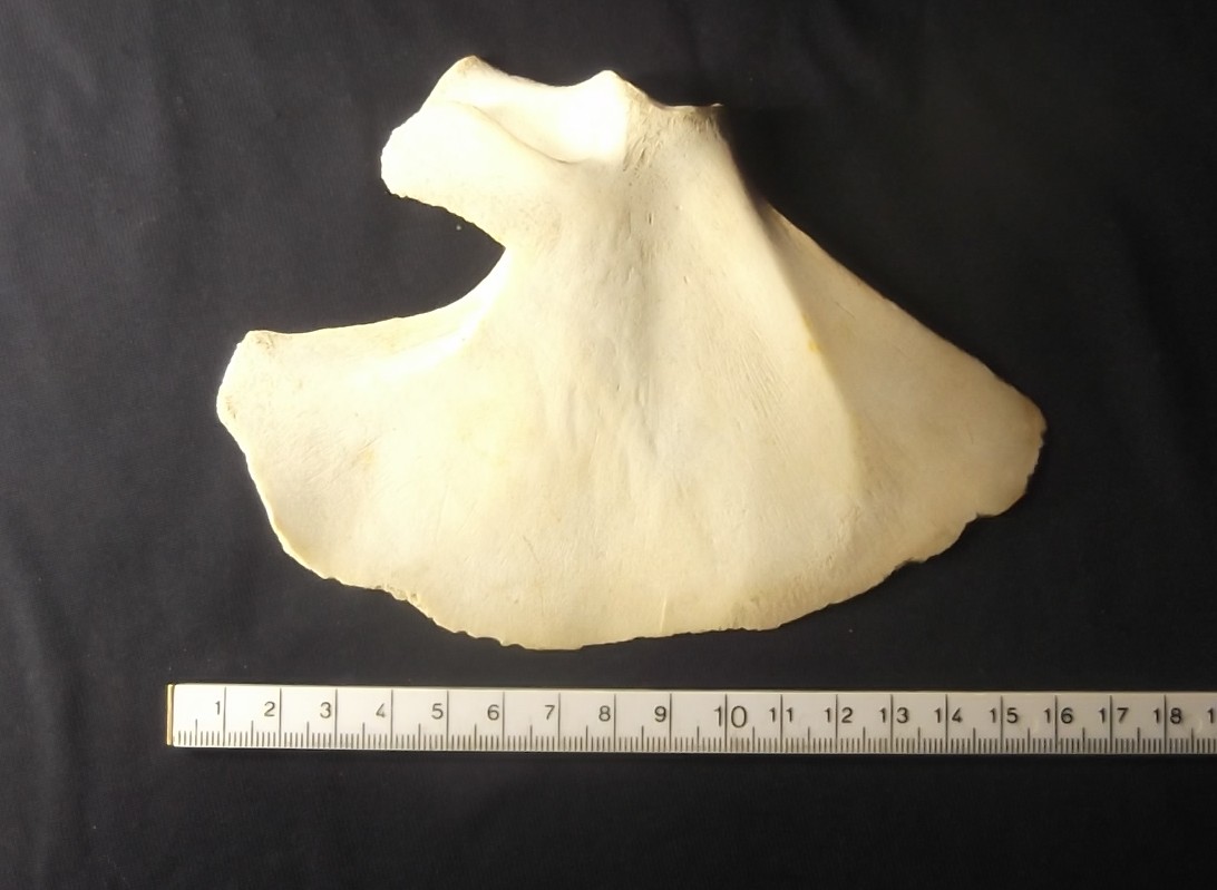 Bruinvis kleine tandwalvis Phocoena phcoena schouderblad scapula fossiel helemaal gaaf opgehaald uit de Noordzee leeftijd ongeveer 35000 jaar pleistocene uniek exemplaar mooi voor studie of verzameling