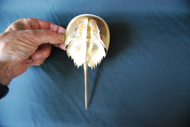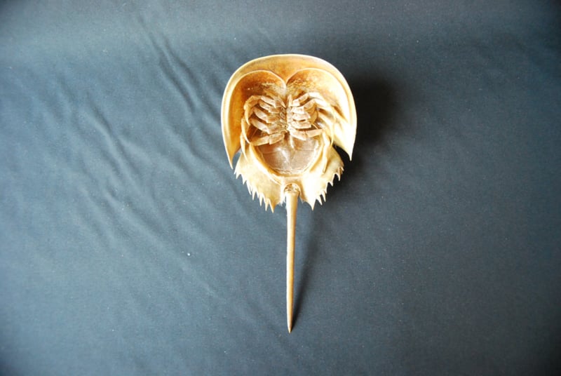 Je zou het niet zeggen, maar een degenkrab is eigelijk een zwaargepantserde spin waarvan de meeste lichaasdelen onder een schild verstopt zitten. Hij leeft in zee maar heeft nog wat spinachtige eigenschappen.De krab heeft aan beide zijkanten een samengesteld oog dat beweging kan waarnemen, en ook twee aan de voorkant, die gevoelig zijn voor ultraviolet licht. Hun blauwe bloed heeft bijzondere eigenschappen en wordt daarom gebruikt voor biomedisch onderzoek.