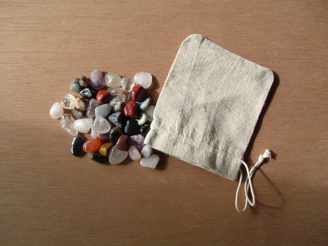 Verzameling natuurlijke edelsteentjes samen in een katoenenbuidel, 100 gram mooi getrommeld en gepolijst van 16 mm. ongeveer 37 stuks niet gekleurd of behandeld