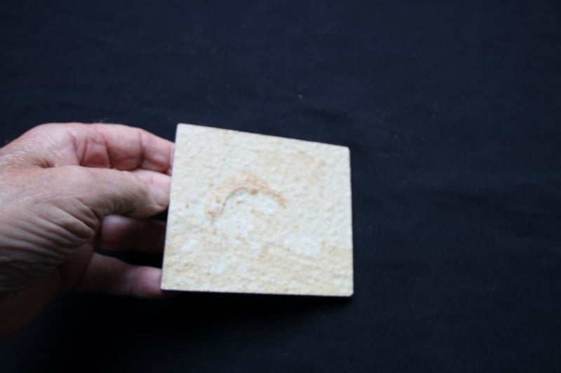 Afmeting vis 8 cm lang 1.5 cm grootste breedteAfmeting tablet 11 x 10 x 0.7 cm.Gewicht 187 gramLeeftijd: Jura 120 miljoenjaar